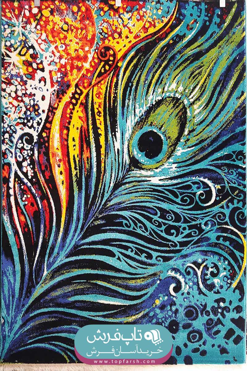 فرش فانتزی طرح پر طاووس آبرنگی كد 947