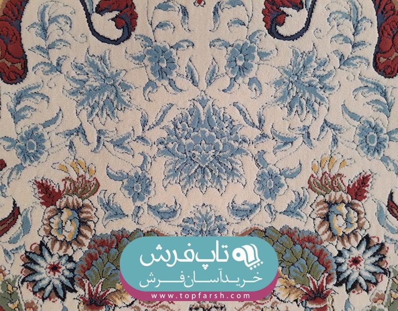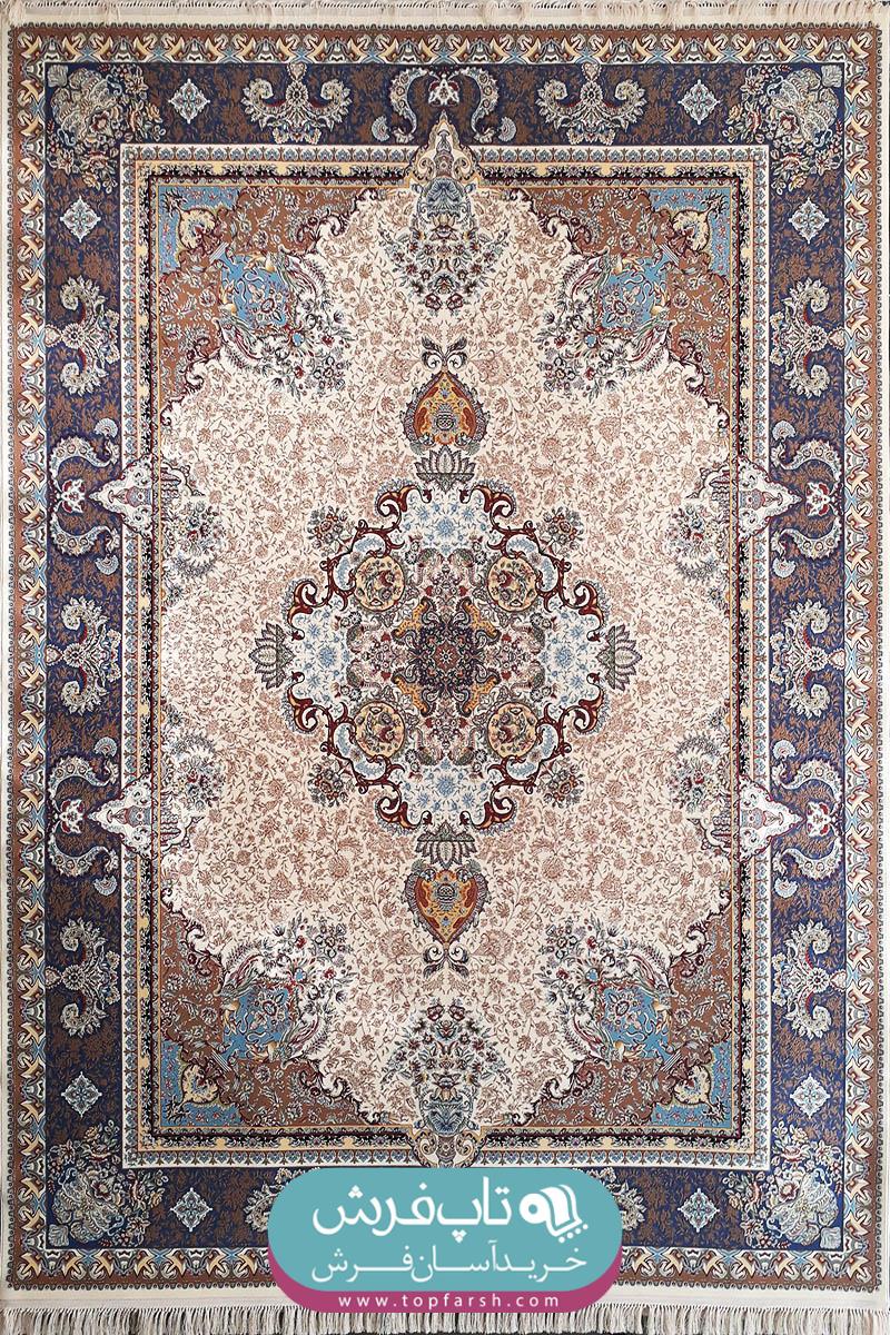 فرش هاي گل برجسته يا هايبالك به تازگي وارد بازار فرش ايران شده است و مورد استقبال مشتريان قرار گرفته است. فرش كد 13005 داراي 2 رنگ برجسته مي باشد. رنگ زمينه آن كرم و رنگ حاشيه آبي بافته شده است.