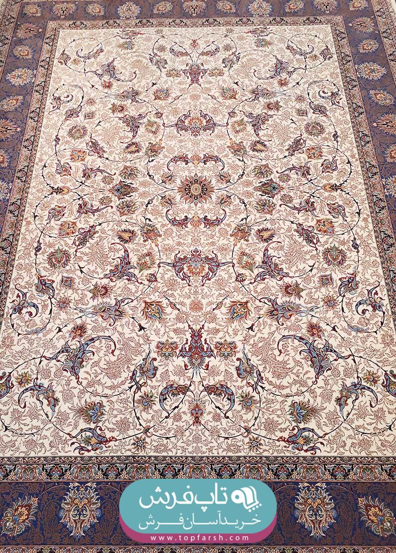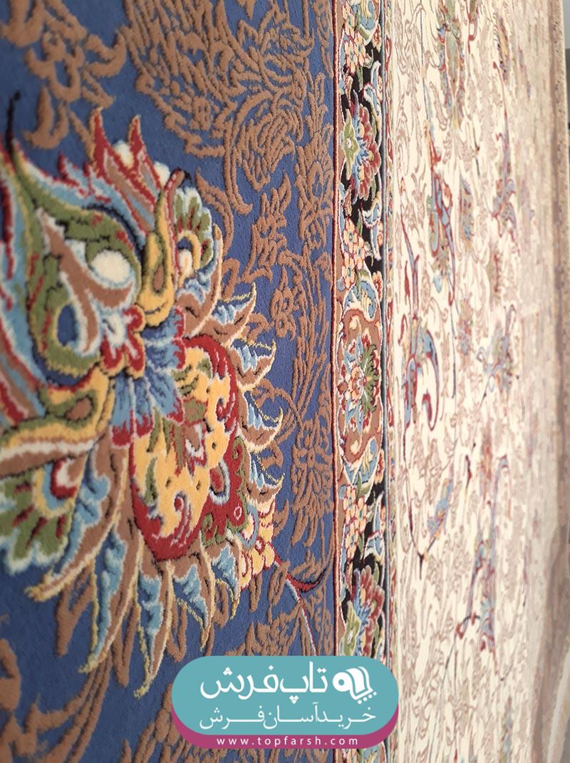 فرش هاي برجسته يا هايبالك به تازگي وارد بازار فرش ايران شذه است و مورد استقبال مشتريان قرار گرفته است. فرش افشان كد 13014 داراي 2 رنگ برجسته مي باشد. رنگ زمينه آن كرم و رنگ حاشيه آبي بافته شده است.
