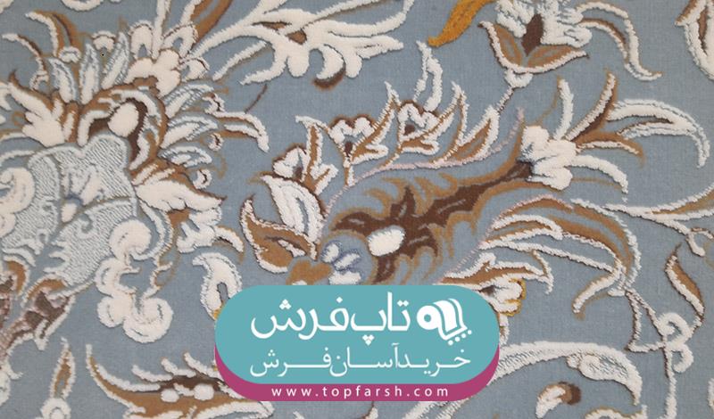 فرش هاي گل برجسته يا هايبالك به تازگي وارد بازار فرش ايران شده است و مورد استقبال مشتريان قرار گرفته است. فرش كد 13111 داراي 2 رنگ برجسته مي باشد. رنگ زمينه آن آبي ملايم كه با تم دستبافت مي باشد