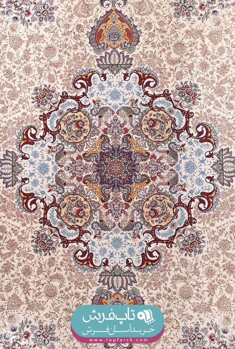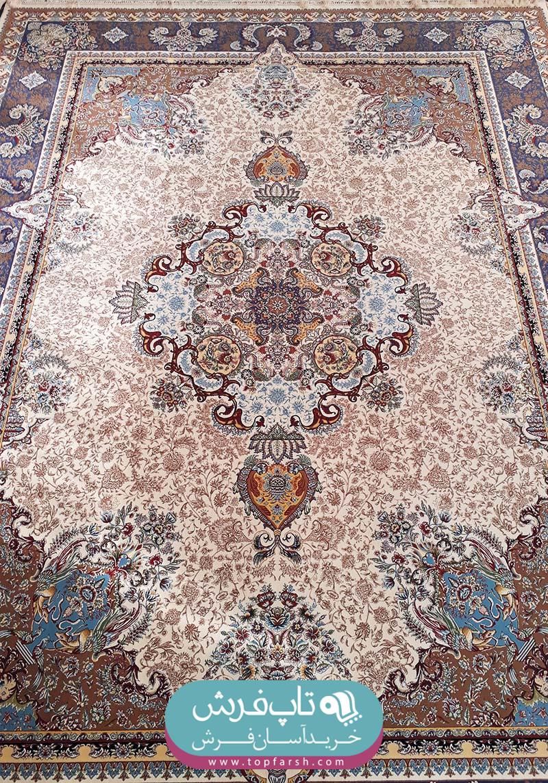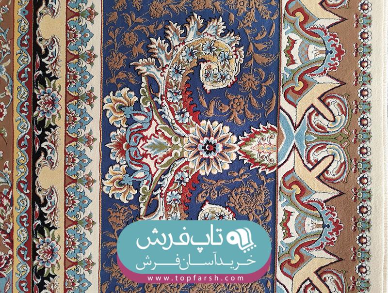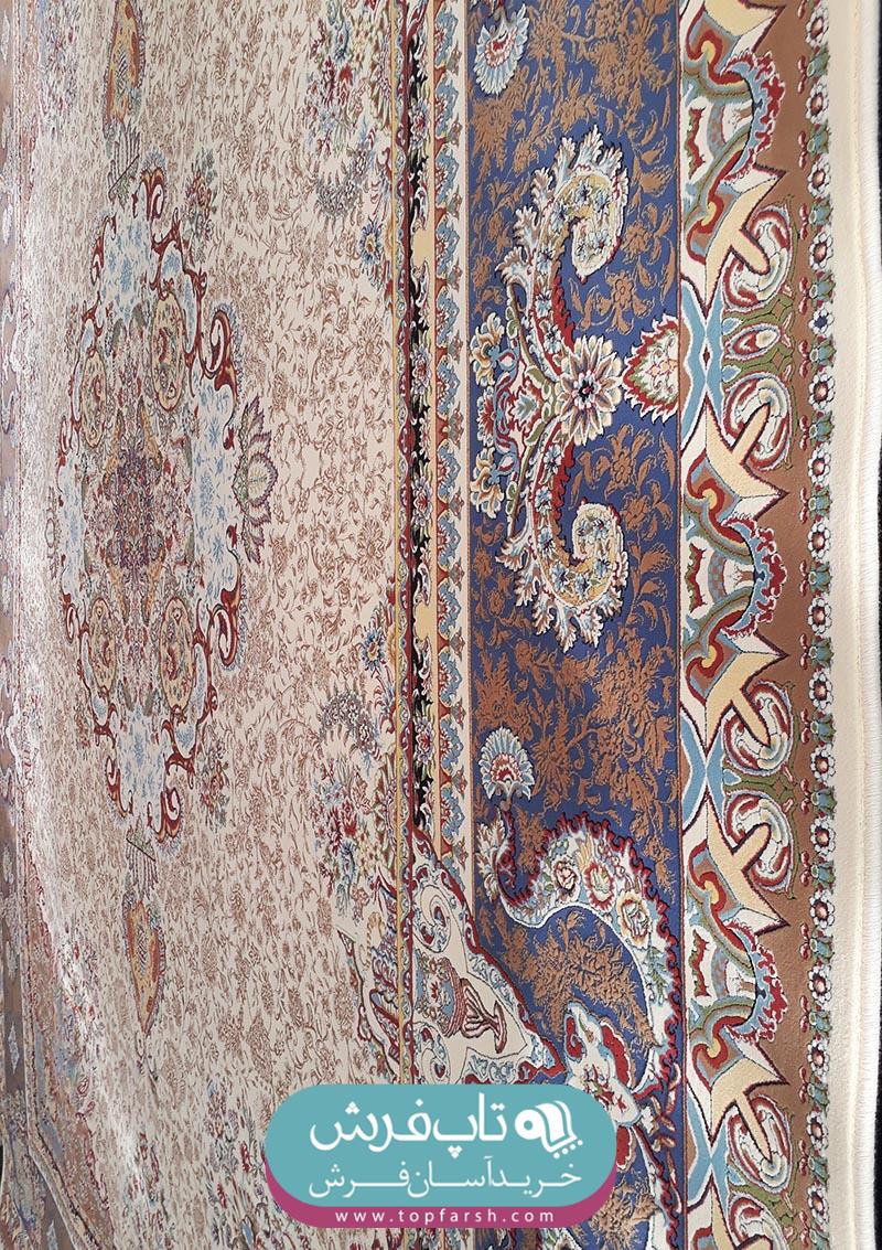 فرش هاي گل برجسته يا هايبالك به تازگي وارد بازار فرش ايران شده است و مورد استقبال مشتريان قرار گرفته است. فرش كد 13005 داراي 2 رنگ برجسته مي باشد. رنگ زمينه آن كرم و رنگ حاشيه آبي بافته شده است.