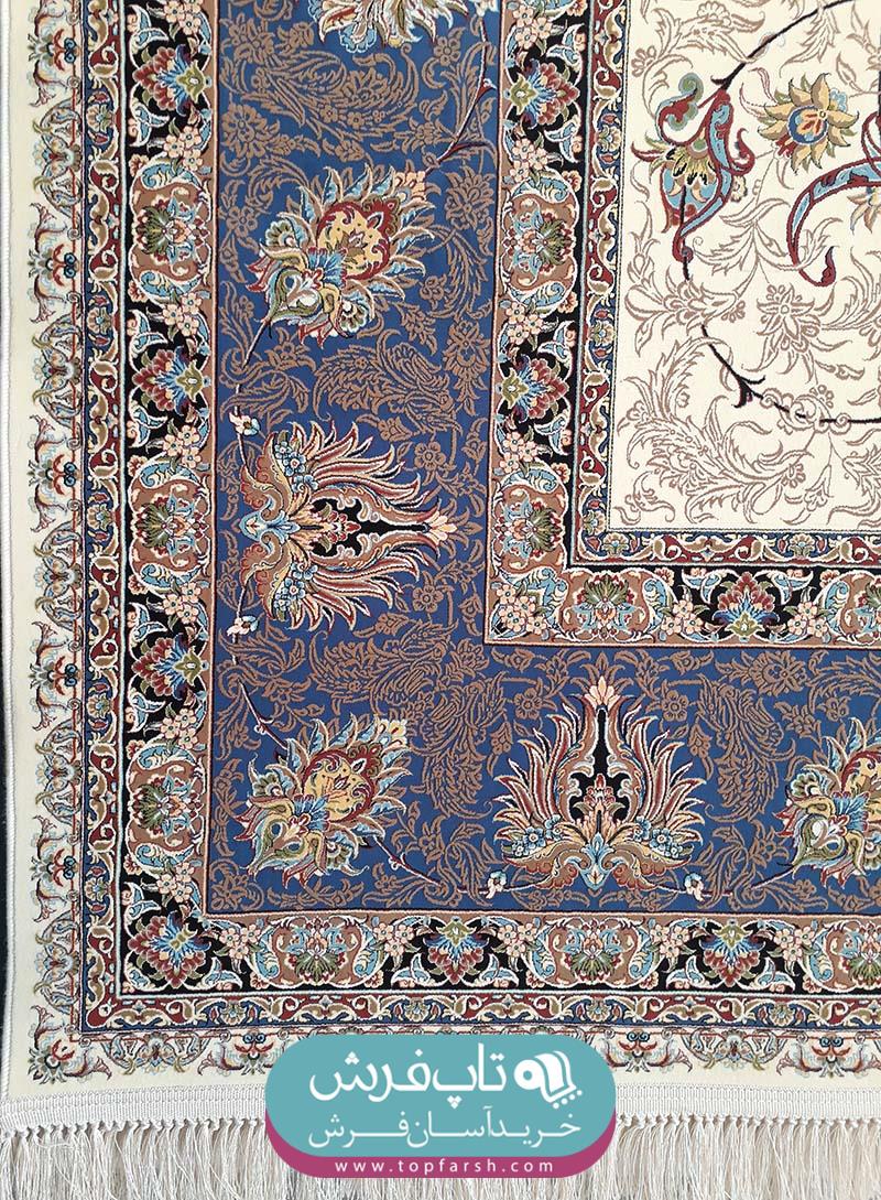 فرش هاي برجسته يا هايبالك به تازگي وارد بازار فرش ايران شذه است و مورد استقبال مشتريان قرار گرفته است. فرش افشان كد 13014 داراي 2 رنگ برجسته مي باشد. رنگ زمينه آن كرم و رنگ حاشيه آبي بافته شده است.