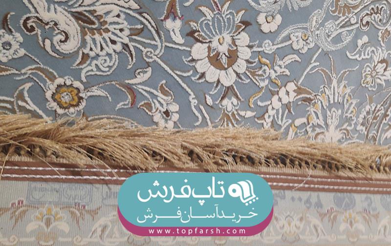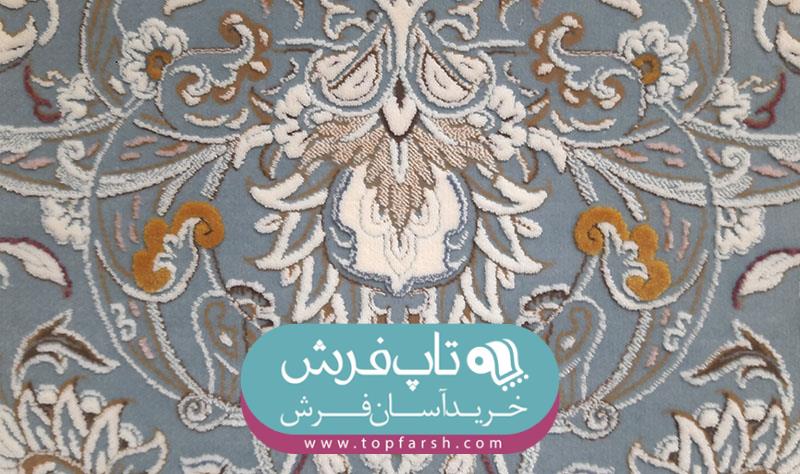 فرش هاي گل برجسته يا هايبالك به تازگي وارد بازار فرش ايران شده است و مورد استقبال مشتريان قرار گرفته است. فرش كد 13111 داراي 2 رنگ برجسته مي باشد. رنگ زمينه آن آبي ملايم كه با تم دستبافت مي باشد